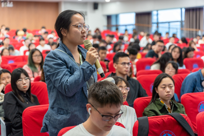 最后的互动提问环节中,朱伟在了解同学们的困惑后,一针见血地指出了问题所在,并给出了细致切实的解决方法。朱伟指出,熬夜造成的身体伤害是不可逆的,提高效率、合理安排时间才能保证效益最大化。