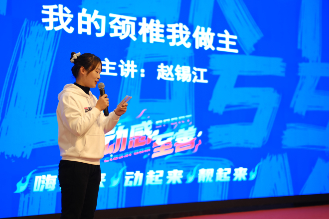 11月17日下午,动感至善之“动感课堂”第三期在北区大学生活动中心F105顺利举办。本期“动感课堂”特邀江南大学附属医院骨科副主任医师赵锡江博士担任主讲嘉宾,邀请专业健身教练作为嗨课教练,吸引了60余名同学参与。本次活动由人文学院辅导员谢铅玉主持。