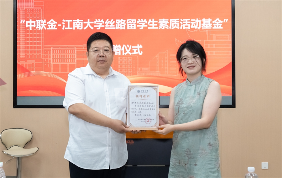 “Silk Road Project Teaching and Internship Base” agreements were also signed between the university and six companies. Zhonglianjin Group Wuxi Stainless Steel E-Commerce Center Co., Ltd. donated RMB 50,000 to establish the “Zhonglianjin–Jiangnan University Silk Road International Student Development Fund,” which aims to support future extracurricular and development activities for the international students.