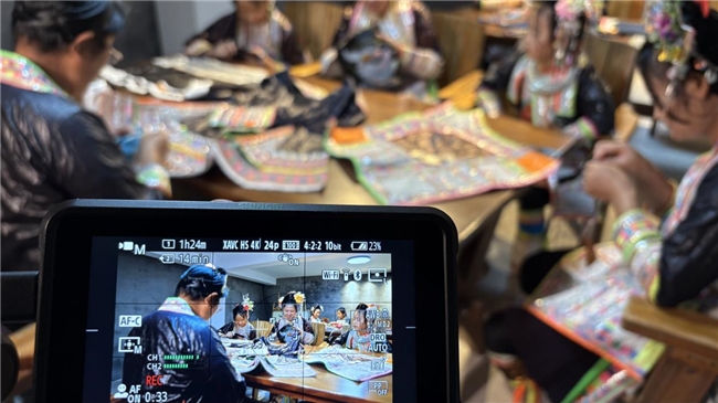 【中国日报网7月20日】数创学子探寻苗绣技艺,光影镜头记录非遗传承。近日,江南大学数字科技与创意设计学院“手指上的中国”社会实践团队奔赴贵州从江岜沙苗寨,开展国家级非物质文化遗产苗绣的记录工作。成员们秉持对中华优秀传统文化的敬畏与探索精神,在为期一周的实践中,运用专业影像技术,深入记录苗绣技艺传承,生动展现了非遗保护与传承的实际成效。