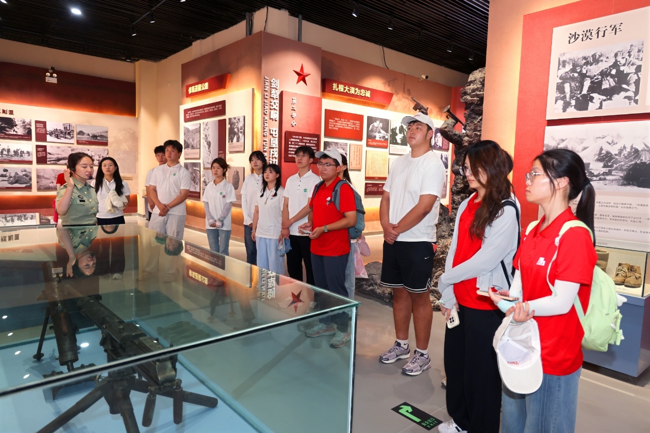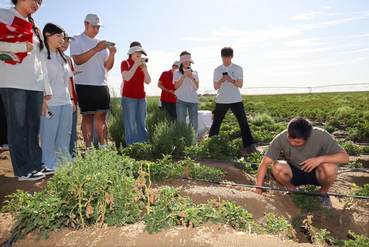汽车穿行在沙漠公路上,队员们随后来到塔克拉玛干沙漠边缘,聆听讲解员讲述大漠边疆的“锁边工程”,从一棵树到一片林,再到如今3000余公里绿色阻沙带,30余万亩良田,一代代建设者兢兢业业、攻坚克难,以科技赋能,将“死亡之海”变为“希望之洲”。“以前只在课本里看到荒漠化治理,今天才真正明白什么是‘绿水青山就是金山银山’。”队员们被沙漠“锁边”“扩绿”的壮举深深震撼。