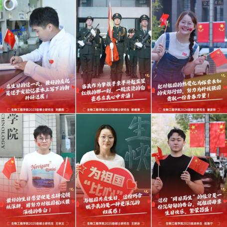 当校园被“中国红”点亮,有一群特殊的年轻人,他们的生日与祖国的华诞不期而遇。“之前我们统计过,生物工程学院共有15名同学都是在10月1日过生日,所以,我们举办‘与国同庆,青春留影’拍摄活动,为祖国母亲庆生,也给这些同学们送上一份独特而温暖的生日礼物。”学院辅导员韩俊老师说。