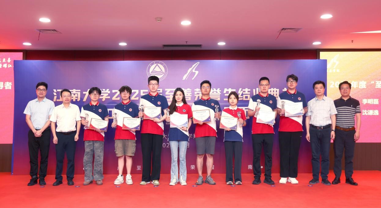 典礼上举行了2025年度至善导师聘任仪式。周小浦、李兆丰为至善人生导师和至善项目导师郑重颁发了聘书。随后,大会宣读了《关于授予李明磊等8名学生江南大学2025年度“至善特别荣誉生奖”的决定》。李兆丰、周伟涛、汪超、周云龙共同为获奖学生颁授荣誉奖杯。