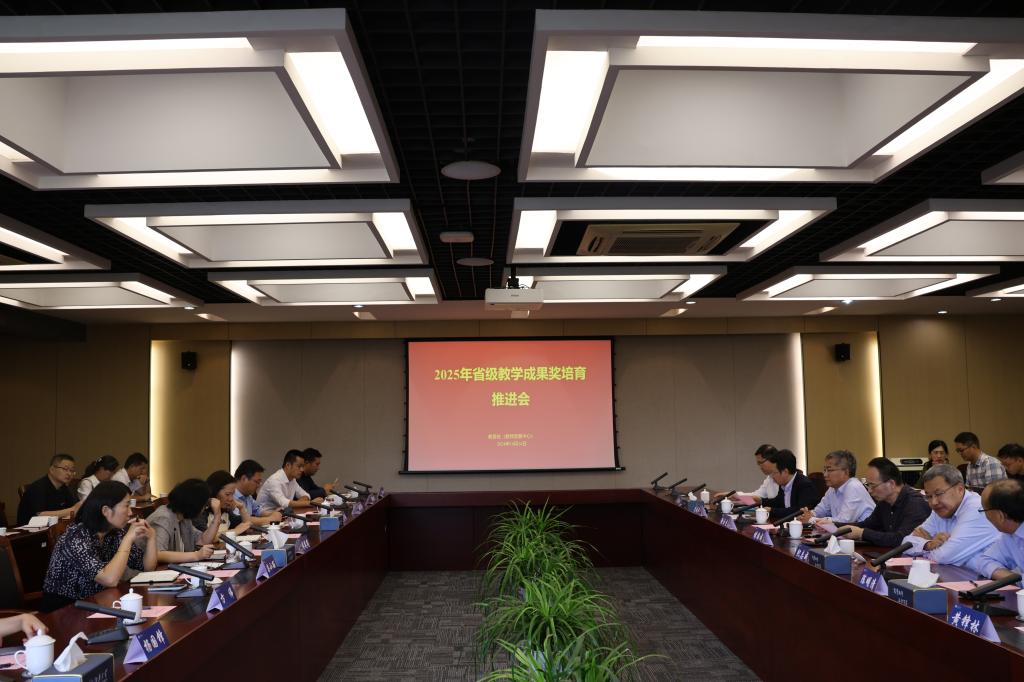 10月14日下午,学校在行政楼B307召开了2025年省级教学成果奖培育工作推进会。会议特邀物联网工程学院纪志成教授、化学与材料工程学院陈明清教授和马克思主义学院徐玉生教授作专题报告。校党委常委、副校长堵国成,教务处处长李兆丰、副处长黄锋林、各学院教学副院长及2025年省级教学成果培育项目第一负责人和项目成员等60余人参加了会议。会议由李兆丰主持。