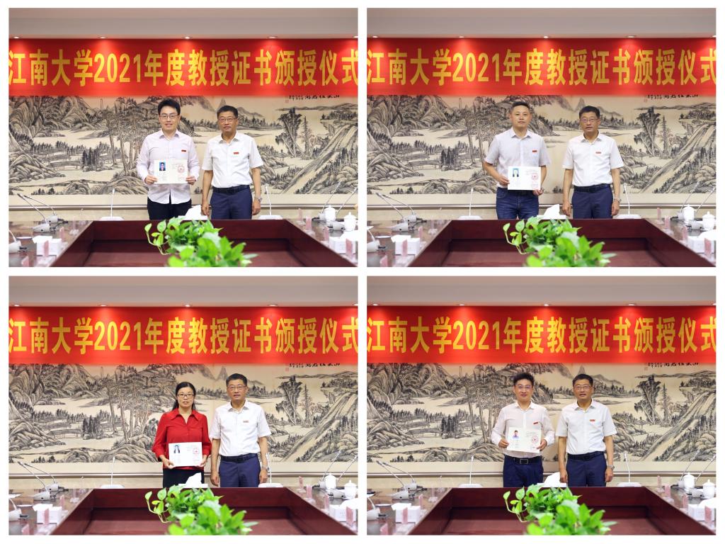 7月8日上午,江南大学2021年度新晋教授证书颁授仪式在行政楼B305会议室举行。校党委书记朱庆葆、校长陈卫以及党委组织部、党委教师工作部、研究生院、人力资源处、社会科学处、产业技术研究院等职能部门负责人出席。颁授仪式由副校长顾正彪主持。