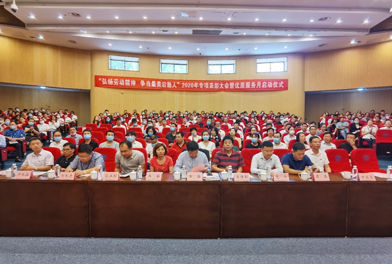 9月28日,后勤保障系统“弘扬劳动精神,争当最美后勤人”2020年专项表彰大会暨优质服务月启动仪式在远东报告厅隆重举行。副校长田备,党办、宣传部、工会、学工部、团委及后勤保障系统各职能部门领导出席会议,后勤系统干部职工、学生代表近300人参加会议。大会由后勤保障系统党委副书记兼后勤工作协调办公室副主任金明媚主持。