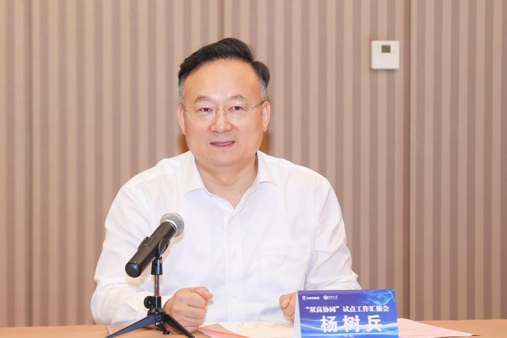 杨树兵对无锡高新区与江南大学“双高协同”试点工作给予肯定,表示试点工作目标明确、行动迅速、措施扎实、成效明显。他强调,要强化统筹协调,一体推进全国高校区域技术转移转化中心、“双高协同”试点、大学科技园建设等重点工作,推动科技创新和产业创新深度融合。要坚持真抓实干,用心用情用力做好各项试点工作,真想干、真能干、真干好,全力推动“双高协同”工作落地见效。要注重总结凝练,强化典型宣传,发挥示范引领作用,凝聚“双高协同”工作合力。