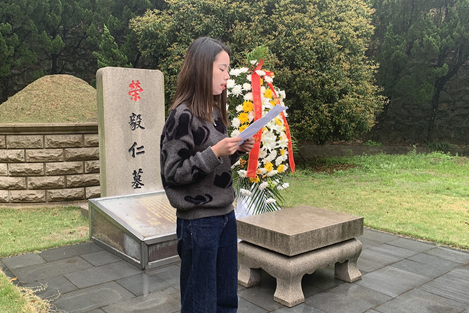 祭扫仪式上,学生代表向陵墓敬献了花篮。教育发展基金会、社会资源处党支部书记介绍了荣毅仁副主席的生平事迹以及其对江南大学的鼎力支持与关心,其襄助教育,造福桑梓的大爱情怀令人动容。外国语学院学生代表表达了对荣毅仁副主席的敬仰和怀念,并表示江南学子不会辜负荣毅仁副主席的重情与厚望,必将努力精进,扬帆远航。参加祭扫的师生静默哀思,并绕墓地一周献上鲜花,表达追思之情。