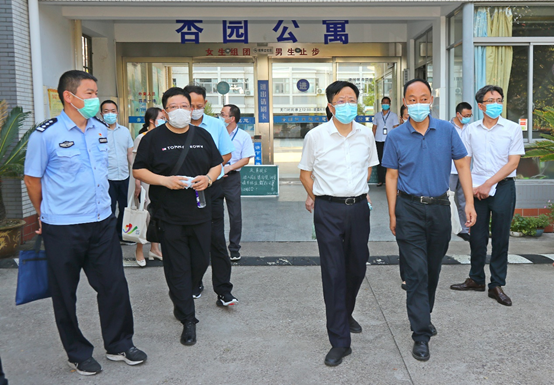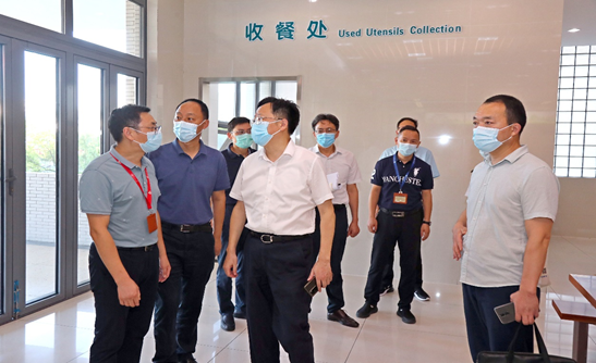 工作组一行仔细询问了学校疫情防控和开学准备工作的相关情况,先后到学校返校缓冲区、核酸检测区、运行指挥中心、学生宿舍、食堂、健康观察点、物资仓库等地实地检查,深入了解学校开学返校报到流程、全员核酸检测方案、宿舍防控措施、食堂就餐管理、隔离观察场所准备、防疫物资储备、应急处置等各项开学准备工作及疫情防控措施落实情况。