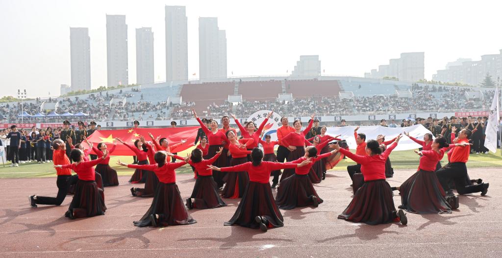 开幕式离退休教职工方队排舞《共圆中国梦》