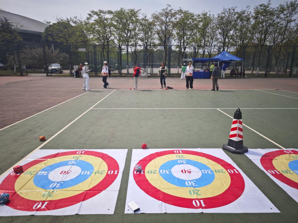 开幕式后,在网球场进行了教工丙组的趣味运动比赛。127名退休教职工分别征战定点射门、投壶、沙包掷准等6个个人项目,11个团队参加了超音速与合力筑塔等2个团体项目的角逐。今年新设的这些项目吸引了更多老同志参与进来,他们在活动中收获了欢乐、健康和友谊。赛后,老体协会长姜忠平为团体项目的前3名颁发了奖品。