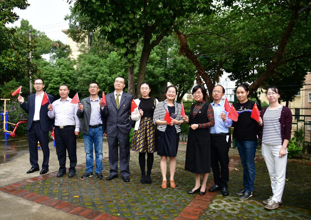 当文艺表演过半时,天淅淅沥沥下起小雨,老同志们依然激情昂扬,雨越下越大,大家仍演得精神,看得起劲,不舍得结束。看到老同志们这样高兴,尽管在职党员自己都已经淋得湿透,但是现场没有一个人退缩,都坚持与老同志们在一起,有序地组织演员们、观众们转移到树荫下、屋檐下继续演出,并维持好秩序,保障好安全。演出最后,全体在职党员与老领导、老教师合唱团冒雨共同高歌“我和我的祖国”,共同祝福祖国繁荣昌盛,掀起了活动的高潮!