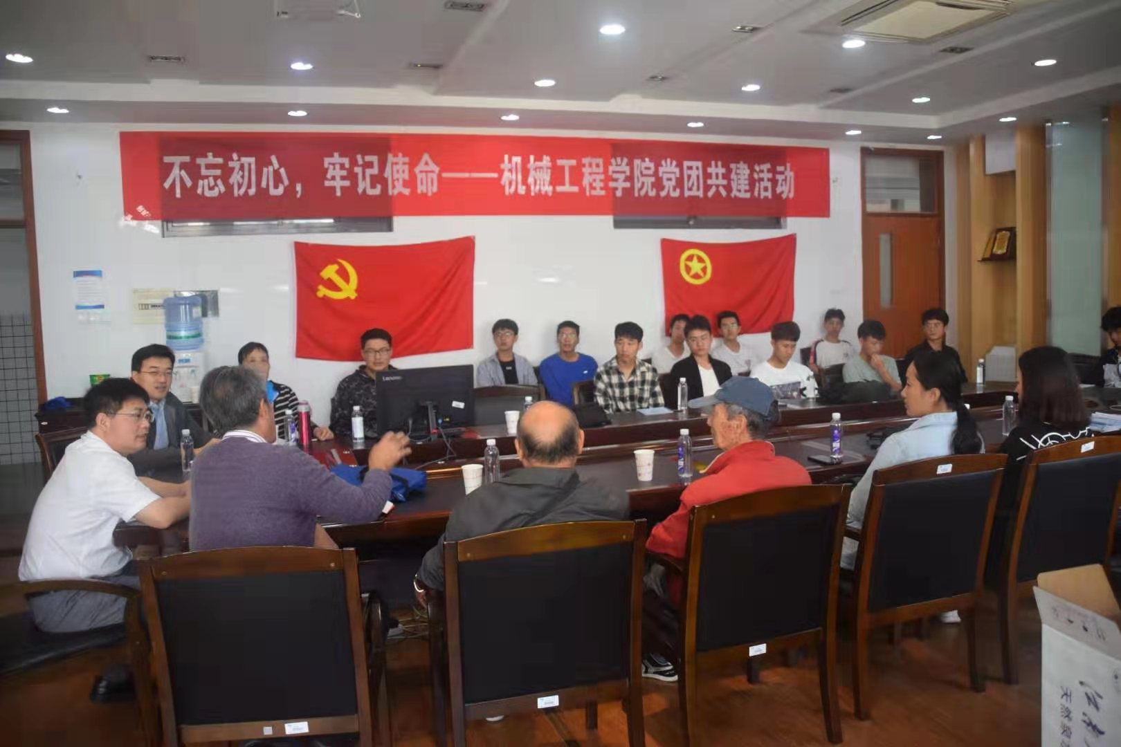 活动内容是不忘初心、牢记使命,向党组织靠拢,创造条件争取早日成为光荣的中国共产党党员。活动首先请方书记讲话,然后由青山退休第五党支部书记黄文华向同学们提出了殷切希望,谈了对不忘初心、牢记使命的认识、学习体会,蔡日增老师,庄容老师、同学们等相继发言。座谈结束后合影留念,并参观了介绍机械学院发展壮大的图片长廊。