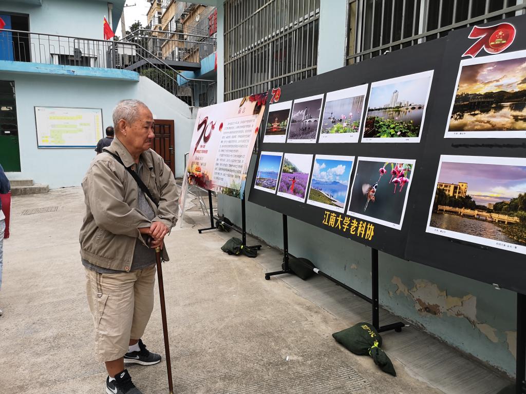 为庆祝新中国成立70周年华诞,同时也为丰富我校离退休老同志的生活,江南大学老科协举办了“我看新中国成立70周年新成就”主题摄影、书画作品展,老同志们通过书之神、画之韵、光影之彩,深情歌颂祖国,感怀幸福生活。作品展首先于重阳节在离退休人员活动中心顺利开展,之后在学校文浩馆、图书馆和南区大学生活动中心巡展。