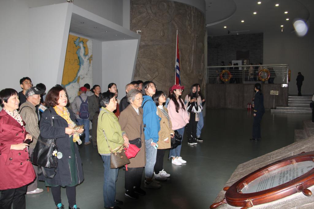 到达目的地,全体师生在教育基地讲解员的引领下,进入海军诞生地纪念馆。首先映入眼帘的是一幅巨大的移动式显示屏,将我军海军建设的各个重要历史时期以浩瀚画卷快速展示出来,极具震撼力和视觉冲击力。进入建军图片、实物展览室,展览以近代苍桑、白马建军、初创岁月、威震海疆、发展壮大、鱼水情深等为主线,将我军海军的建军、强军历史脉络一一展示出来。在展览中全体师生对革命前辈克服艰难险阻,在极其困难的条件下,从无到有,创建第一支人民海军深感敬佩;对人民海军在党的领导下,从弱到强,建设成为一支受世界瞩目的、现代化的海军深受鼓舞和自豪。整个参观过程使全体师生受到了一次深刻的思想教育和革命传统教育。对不忘初心、牢记使命,担当责任,前赴后继,英勇奋斗,有了更深入的理解。