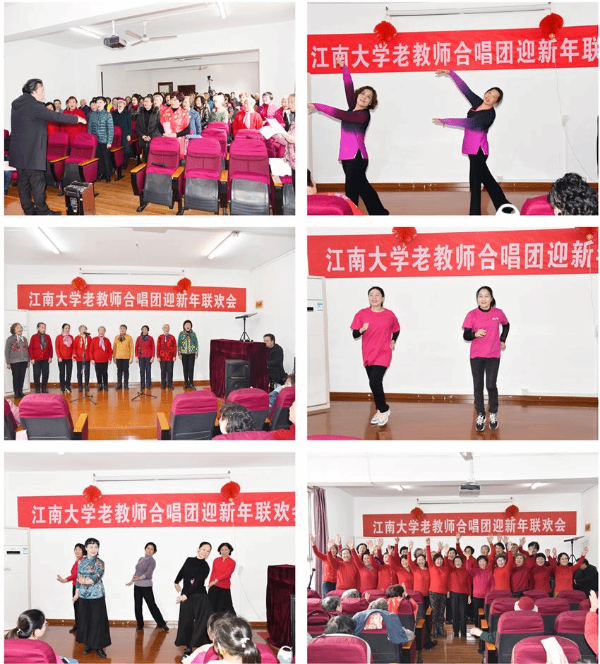江南大学老教师合唱团迎新年文艺联欢已开展多年。合唱团活动深受老同志们的欢迎,老同志们不仅愉悦了身心,也增进了交流,同时也体现了老同志们美好的退休生活。