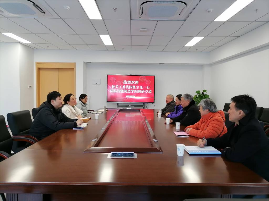 12月18日下午,校关工委常务副主任娄国栋带领工作团队同志,先后到智能制造(君远)学院、集成电路学院就关心下一代工作进行走访调研。离退休党工委副书记、离退休工作处副处长陈袆,校关工委副秘书长吴骥一、鲍国庆、衡延笃等随同参加调研工作。