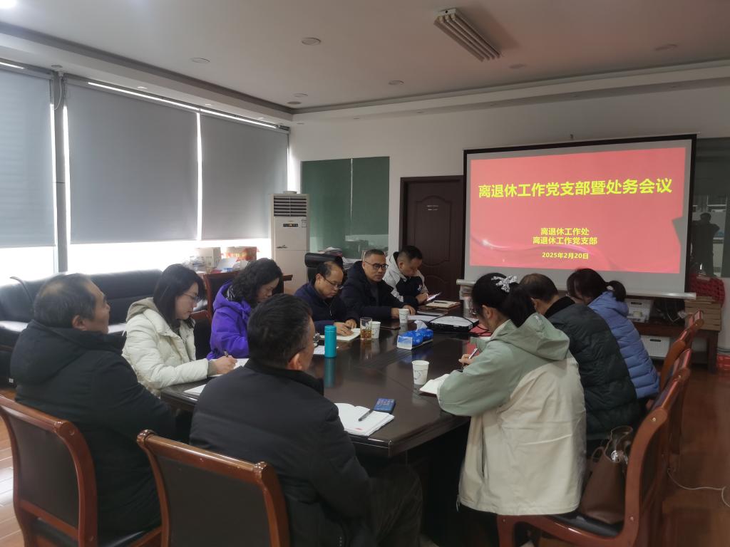 张才兴指出,新年第一个工作周,离退休工作党支部即召开组织生活会,学习习近平总书记关于老龄、老干部工作的指示、批示、讲话精神,这是持续加强党的政治建设、提高政治站位和政治能力、强化党员干部思想淬炼的重要抓手。离退休工作党支部要将第一时间组织学习贯彻习近平新时代中国特色社会主义思想、习近平总书记重要讲话、指示批示精神等作为制度性安排,把学习融入日常、抓在经常。离退休处全体党员一定要按照习近平总书记关于老龄工作、老干部工作的指示批示精神,站在政治和全局的高度,扎实做好新时代新征程老同志工作,具体要做到四个“聚焦”,即聚焦思想引领,砥砺理想信念;聚焦服务大局,围绕学校中心工作,与学校同奋进;聚焦关爱关怀,把更多精力放在帮助老同志解决实际困难,激励鼓励更多老同志参与服务学校、服务自身和服务社会上来;聚焦能力提升,每个人都要着眼于新时代光荣使命和新要求,通过学习新知识、新技术,不断提升自己的业务水平。