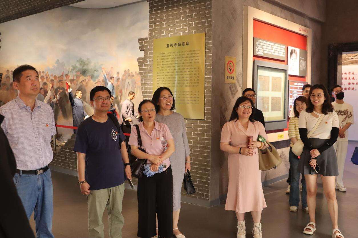 活动伊始,首先参观了宜兴市革命传统教育、爱国主义教育和党风廉政教育的重要基地——宜兴党史陈列馆。在跟随着工作人员的讲解下,全员回顾了党的光荣历史,重温了中国共产党人不畏牺牲、前赴后继的大无畏精神,通过深入了解这部“走着读”的宜兴地方党史,大家深受感染,矢志践行初心使命。