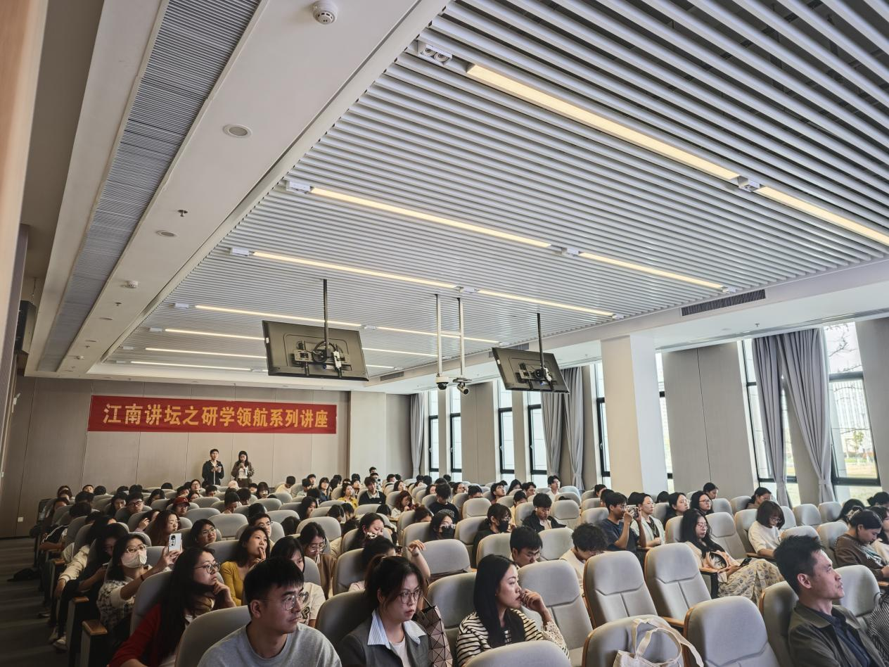 3月26日下午,江南讲坛之研学领航系列讲座东氿校区专场于知行楼C106报告厅成功举办。党委研究生工作部副部长、研究生院副院长陈周、各学院辅导员代表、研工部全体人员、“研学领航团”首批成员,以及各学院研究生代表共同出席此次活动。讲座由环境与生态学院周期老师主持。