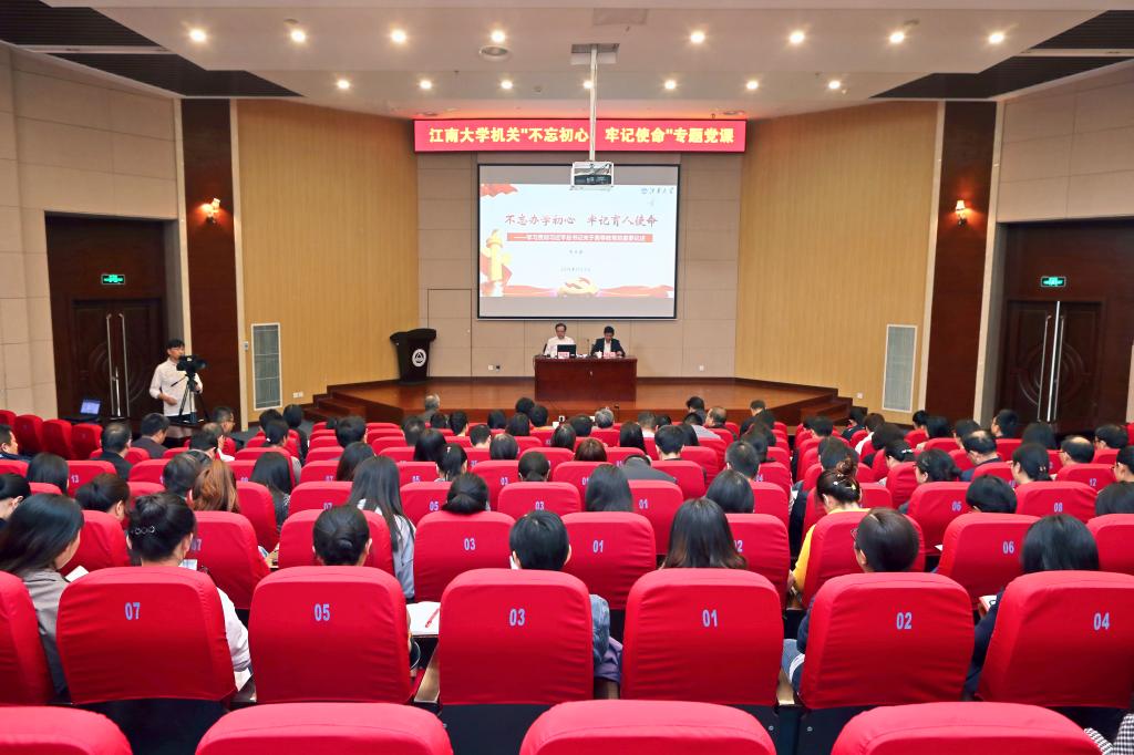 为深入贯彻落实中央、教育部开展“不忘初心、牢记使命”主题教育的总体部署,全面落实我校第四次党代会精神,根据学校主题教育工作的相关安排,11月1日下午,校党委书记朱庆葆以“不忘办学初心 牢记育人使命——学习贯彻习近平总书记关于高等教育的重要论述”为题,在远东报告厅为机关全体党员讲授了专题党课。机关200余位党员同志参加了学习。活动由机关党委书记周建中主持。