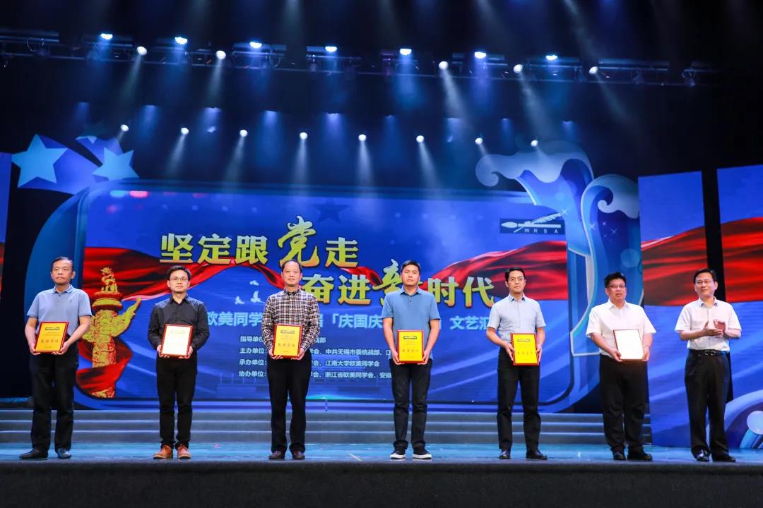 江苏省委统战部一级巡视员方未艾,无锡市欧美同学会会长、江南大学校长陈卫,无锡市委副秘书长曹国光为江苏省欧美同学会先进工作者颁奖