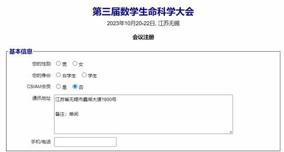 请于2023年9月20日前登录会议注册网址https://csiam.org.cn/submission/注册。由主办单位“中国工业与应用数学学会”收取会议注册费及开具发票。