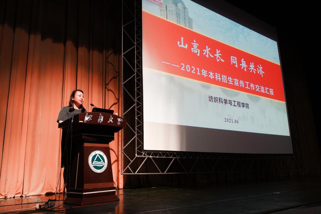 会上,纺织科学与工程学院党委书记张菁结合落实招生工作方案代表学院作交流发言,她从“以招生宣传为契机,强化专业内涵建设;以对口区域为重点,有效构建工作网络;以资源整合为抓手,拓展宣传辐射影响”等方面,介绍了学院的主动作为和积极探索,并就专业招生模式改革倒逼高校人才培养模式创新提出建设性的思路。黑龙江招生宣传组负责人、学生工作处副处长李荣华作经验交流,她分享了富有成效的招生宣传做法和真切体会。