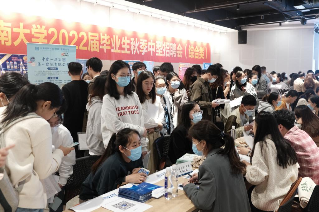 10月30日下午,我校在北区大学生活动中心举办“江南大学2022届毕业生秋季中型招聘会(综合类)”,百威、蓝月亮、深信服、森马、隆力奇、中电科、无锡先导智能、无锡农村商业银行、融创等60家各行业知名单位参会,涵盖食品快消、生物医药、纺织服装、信息通讯、智能制造、材料化工、新基建、新能源、金融、教育、房地产等领域,为毕业生提供7452个优质职位,吸引我校760名毕业生前来求职。