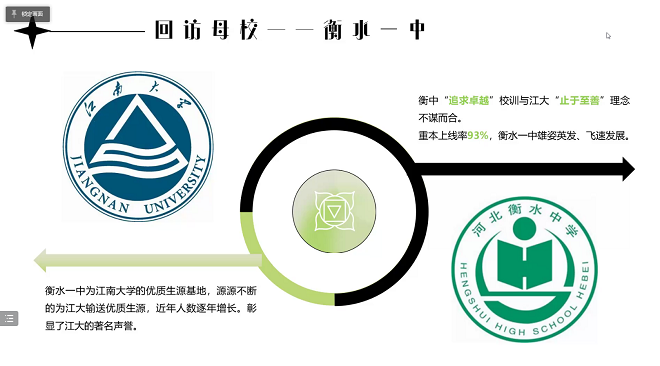 答辩中,各团队选手通过线上PPT答辩形式从宣讲团队介绍、前期准备工作、宣讲成果展示、团队创新设计等方面汇报展示中学行活动成果。各团队宣传形式多样、特色鲜明,团队制作高考加油视频鼓励学弟学妹们坚持奋斗,设计线上《合成江南大学》小游戏感受江南之美,设计定制江南周边文创增加宣传效果,组建的宣讲交流qq群、微信群以及钉钉群仍然保持活跃互动,让家长和学生获得一手的招生资讯。评委们在提问环节中也给予各团队更优化的建议和意见。本次中学行优秀团队将评选一、二、三等奖,结果将在各中学行群中公布。