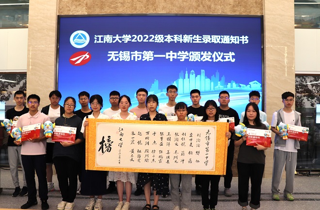 张影陆代表学校向考入江南大学的20名无锡一中优秀学子表示诚挚祝贺,向辛勤培育优秀学子的无锡一中全体领导、老师表达最真挚的敬意和谢意。近年来,无锡一中和江南大学双方合作、互动密切,取得了丰硕可喜的成果。未来,江南大学与无锡一中的战略合作将更上“新高度”“新日程”,不断深化“双高”合作,共谋发展的新篇章。她希望同学们未来在江南大学的美好时光中,感受江南大学深厚的文化底蕴,享受综合、开放、创新的人才培养环境,感受浓郁的学术氛围,体验丰富多彩的校园文化生活,欣赏曲水流觞的校园美景,践行江南大学“笃学尚行 止于至善”的校训精神,珍惜韶华,奋勇争先,求真学问,练真本领。做一个品行高尚、充满爱心、勤奋学习、勇于实践的新时代大学生,为实现中华民族伟大复兴的中国梦贡献青春力量。讲话最后,张影陆宣读2022年录取江南大学的20位无锡一中学子名单。