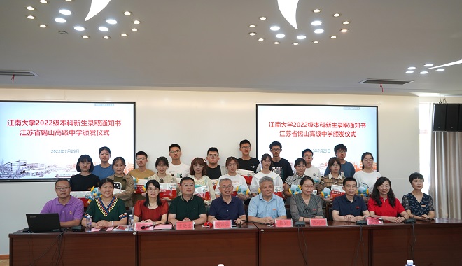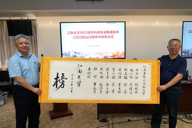 7月29日上午,江南大学党委常委、副校长徐岩亲赴江苏省锡山高级中学,为2022级本科新生颁发录取通知书。
