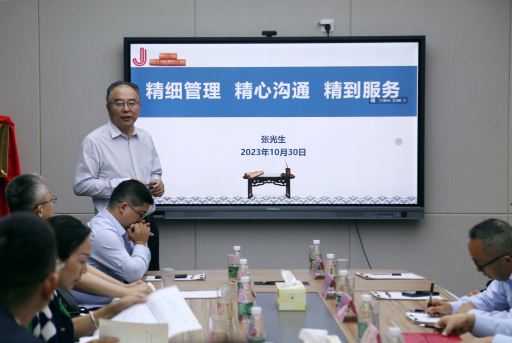 会上,张光生着重围绕“精细管理,细节决定成败”“精心沟通,氛围决定绩效”“精到服务,态度决定一切”等三个部分作专题辅导培训。他重点阐述了如何提升管理服务能力、如何有效实施科技服务、如何善于思考提炼总结,梳理和分享了诸多做好管理工作的经验和道理。他希望大家“在思考中探寻方向,在实践中磨练本领,在学习中升华提高”。