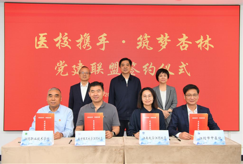 春风和煦,万物生辉。4月25日,“岐黄润暨阳·惠民启新篇”系列活动之党建联盟签约仪式于江阴市中医院学会文圭讲坛举行。纤维工程与装备技术学院党委书记陆敏芝代表学院,与江阴市中医院、南京理工大学江阴校区、江阴职业技术学院共同签署了“医校携手·筑梦杏林”战略合作协议,江阴市政协主席邵文松、市人民政府副市长金丹菁、市政协副主席陈兴初出席并见证了本次签约。