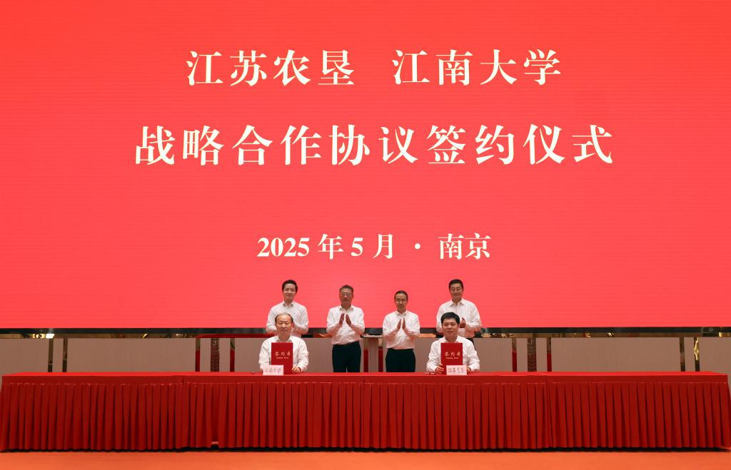5月7日,江南大学与江苏省农垦集团有限公司新一轮战略合作协议签约仪式在南京举行。中国工程院院士、江南大学校长陈卫,江苏农垦党委书记、董事长吴本辉出席仪式并讲话,江苏农垦党委副书记朱浩,江南大学党委常委、副校长顾正彪、马鑫等出席仪式。活动由江苏农垦党委委员、副总经理王立新主持。