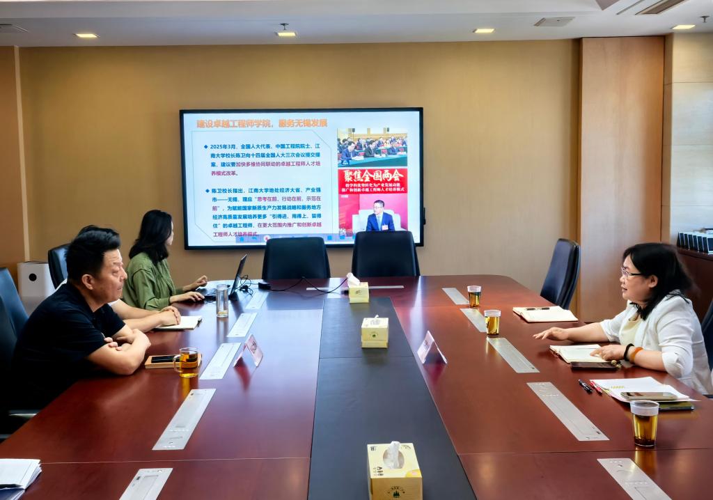 孙子文简要汇报了卓越工程师学院的发展布局和建设进展,重点介绍了江南大学江苏省卓越工程师学院宜兴中心2025年“卓工项目”招生情况。她指出,学院通过校政企联合招生、双导师制培养、需求导向型课题设置等创新模式,推动教育链、人才链与产业链深度融合。她希望在政府部门驱动下,精准对接企业技术难题,助力解决企业“卡脖子”问题,打造“课题即需求、攻关即培养”的产教融合新范式。